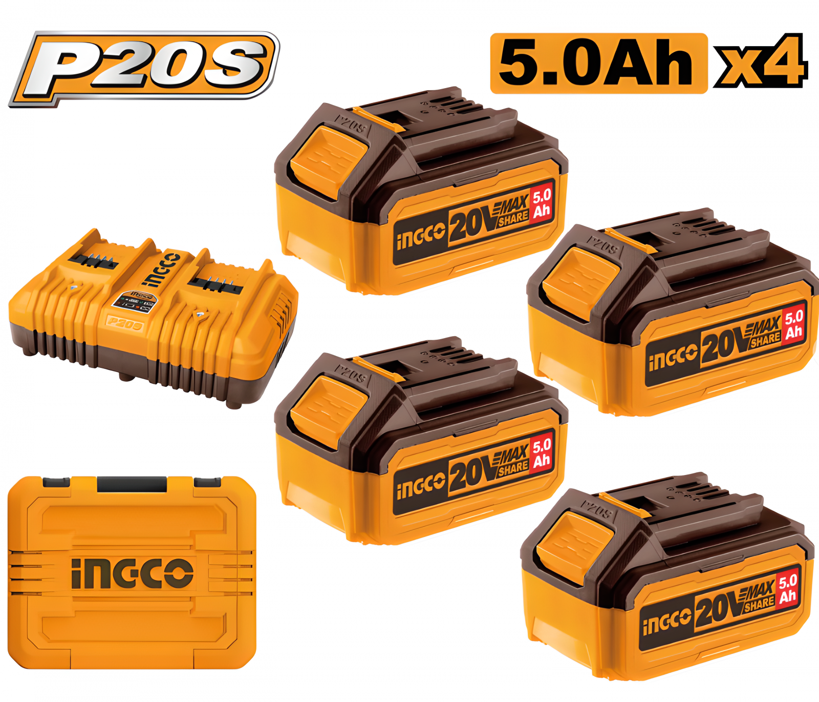 Set de 4 baterii litiu-ion 20V 5Ah + încărcător dublu, ideal pentru unelte electrice P20S. Autonomie ridicată, încărcare rapidă și compatibilitate universală, perfect pentru proiecte de bricolaj și profesioniști.