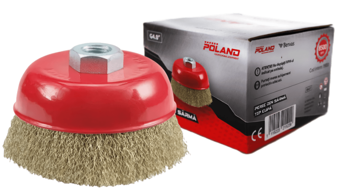 Se montează pe polizorul unghiular (flex) și se utilizează la turația recomandată pentru curățarea suprafețelor metalice.