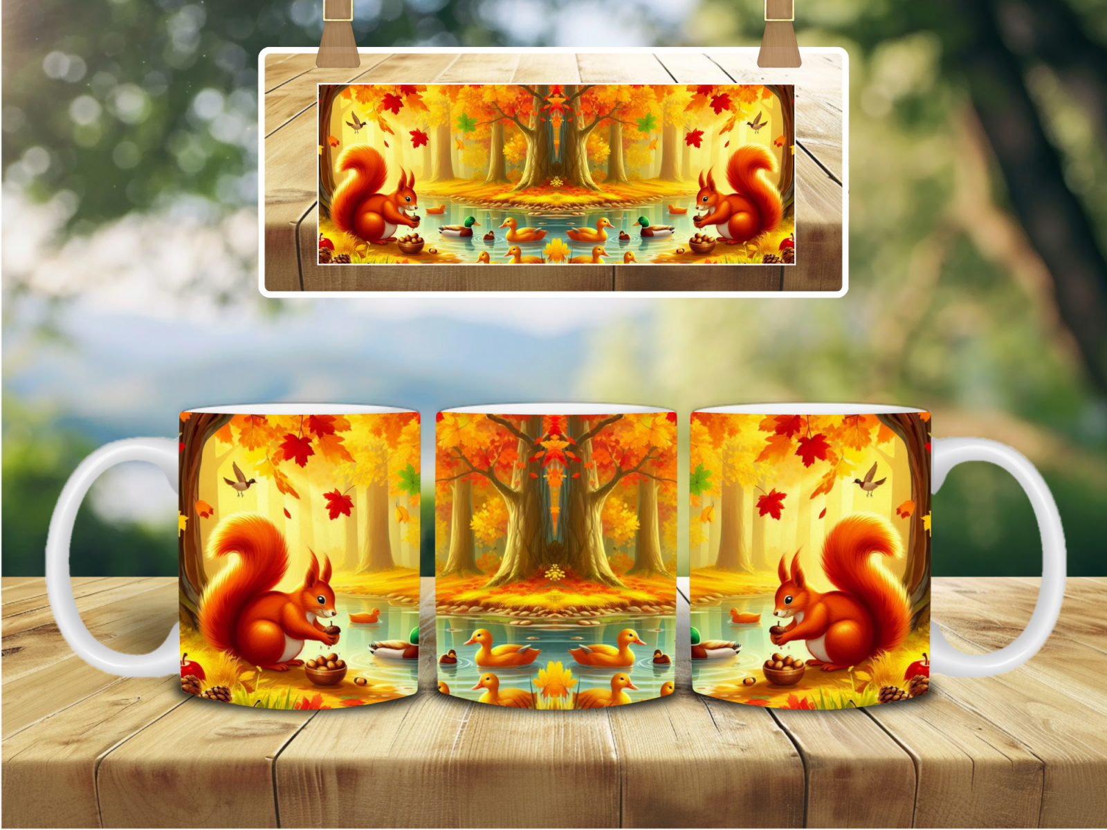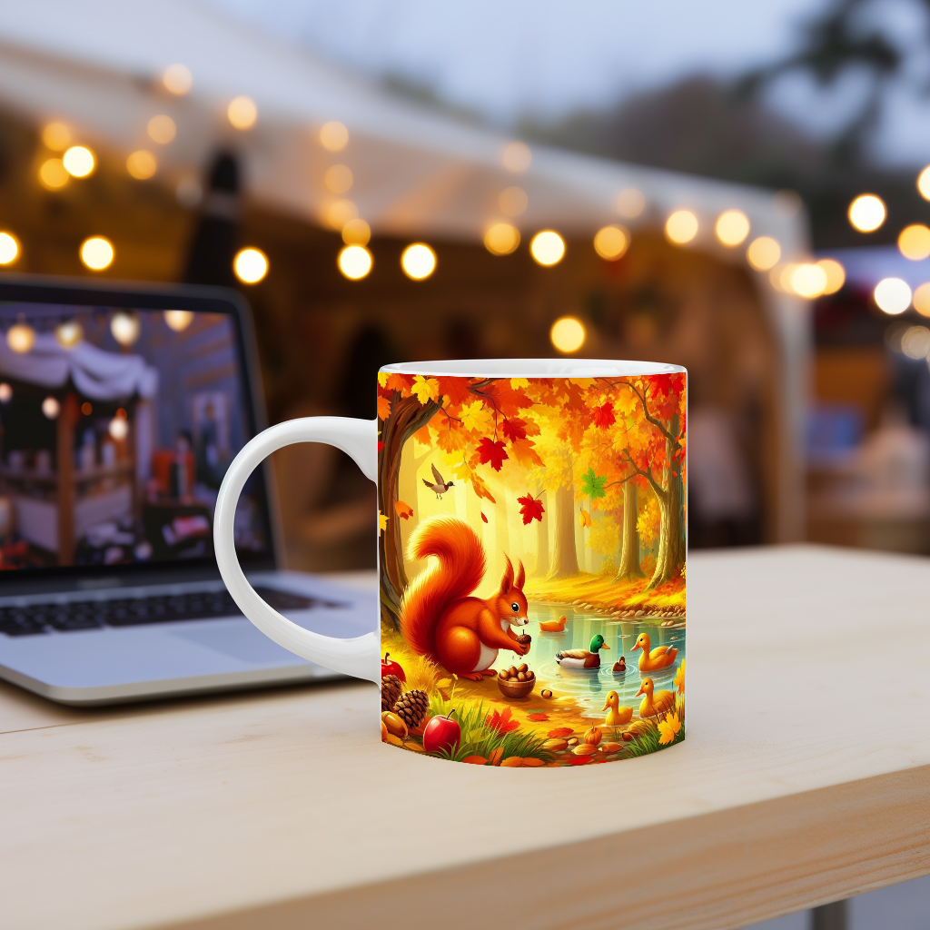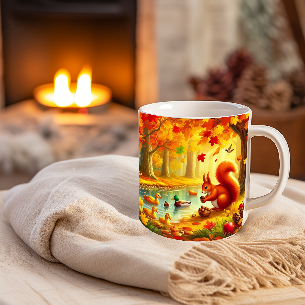 Cană albă cu veveriță drăgălașă. Cadoul perfect pentru cei care iubesc natura.