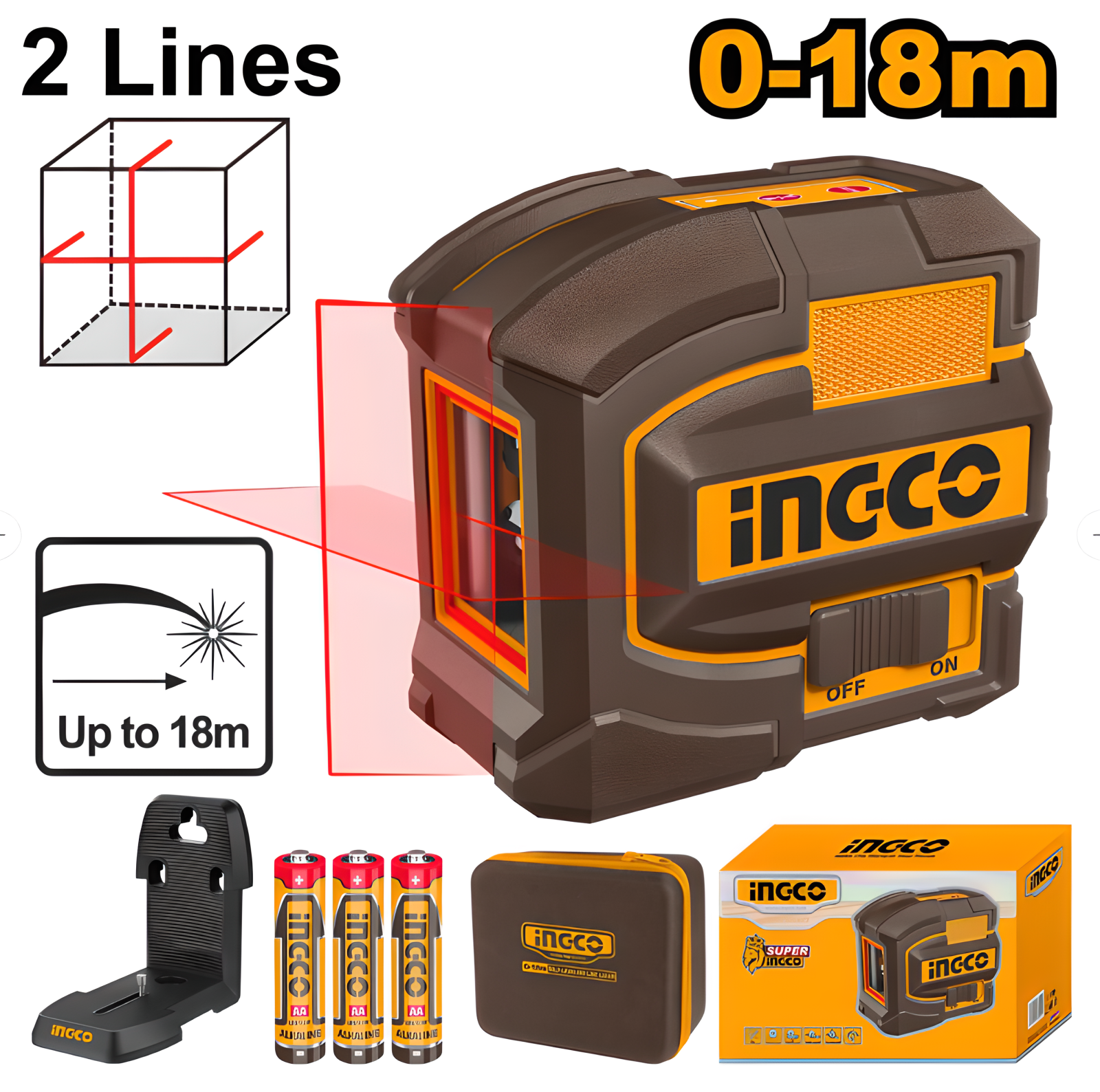 Nivelă cu laser roșu INGCO cu autonivelare rapidă, ideală pentru lucrări de aliniere orizontală și verticală în construcții, amenajări interioare și montaj. Echipată cu suport magnetic și husă de transport, oferă o soluție practică și precisă pentru profesioniști și pasionați de bricolaj.