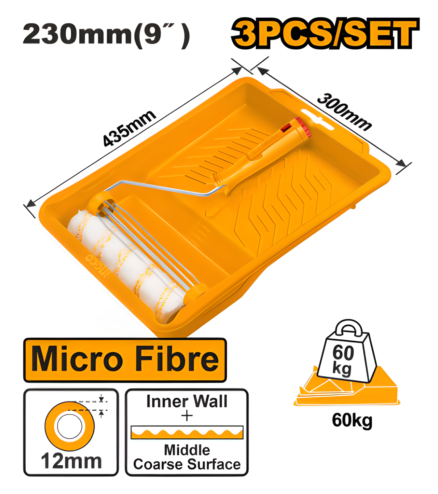 ✔️ Setul include un trafalet din microfibră, o tavă de vopsit, un suport cilindric și o rezervă trafalet.